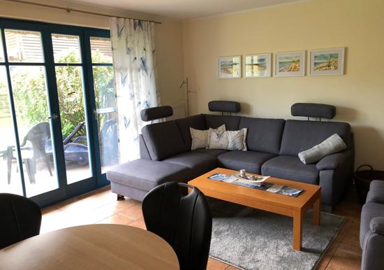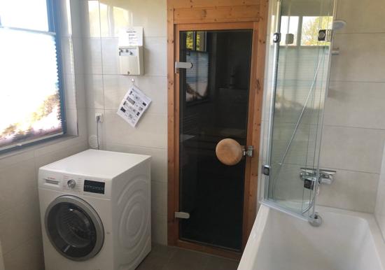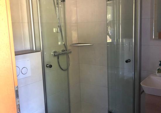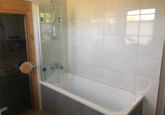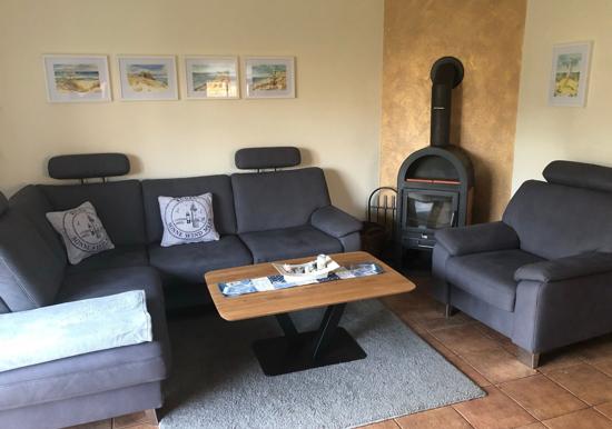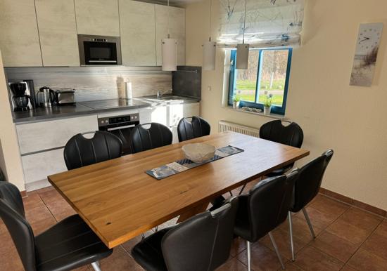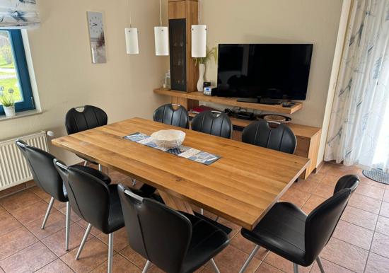 Die Ferienwohnung bietet eine großzügige und allergikergeeignete Unterkunft mit drei Schlafzimmern, ausgestattet mit zwei Doppelbetten und zwei Einzelbetten. Die offene Küche ist modern eingerichtet und verfügt über einen Elektro-/Gasherd, Backofen, Mikrowelle, Geschirrspüler und Kühlschrank, sowie eine Kaffeemaschine und Toaster. Ein Esstisch lädt zu gemeinsamen Mahlzeiten ein. Die Wohnung bietet zwei Badezimmer, jeweils mit Fenster, Duschbad, Haartrockner und Kosmetikspiegel. Der gemütliche Wohnbereich ist mit einem Kamin oder Kachelofen, einem Sofa, Sessel und einer HiFi-Anlage ausgestattet, sowie einem TV mit DVD-/Blu-ray-Player. Praktische Annehmlichkeiten wie WLAN, Waschmaschine, Wäschetrockner und Bügeleisen stehen zur Verfügung. Ein Kinderhochstuhl und Fliegengitter sorgen für zusätzlichen Komfort. Das gesamte Ambiente ist einladend und gleichsam funktional, ideal für einen erholsamen Aufenthalt.