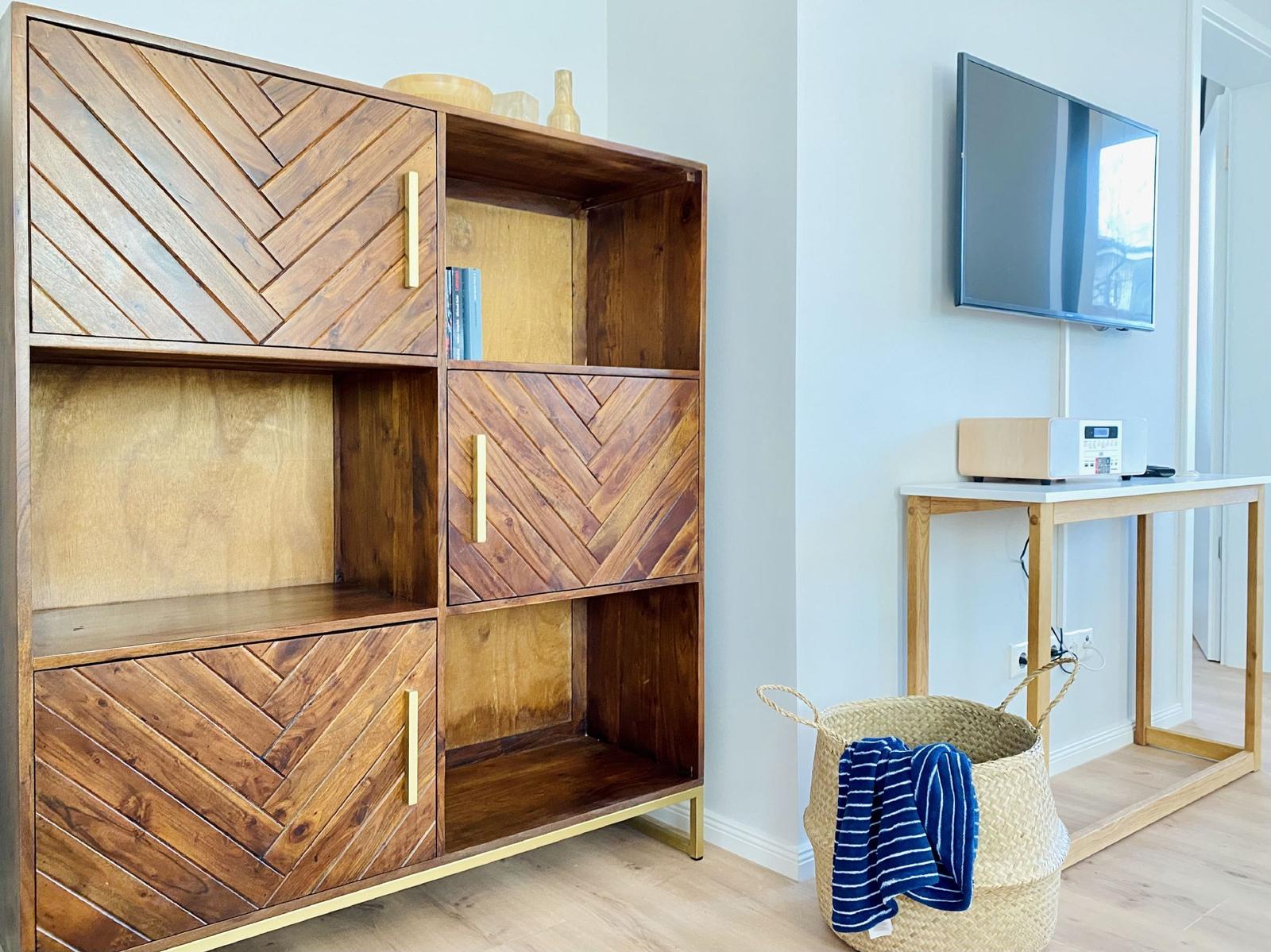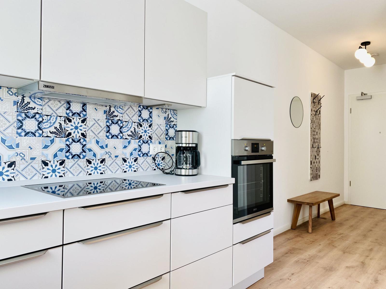 Die offene Küche ist voll ausgestattet mit einem Elektro-/Gasherd, Backofen, Geschirrspüler, Mikrowelle, Kühlschrank und einer Kaffeemaschine. Ein Esstisch und gemütliche Stühle laden zu geselligen Mahlzeiten ein. WLAN, TV-Flachbildschirm und eine HiFi-Anlage gewährleisten Unterhaltung.