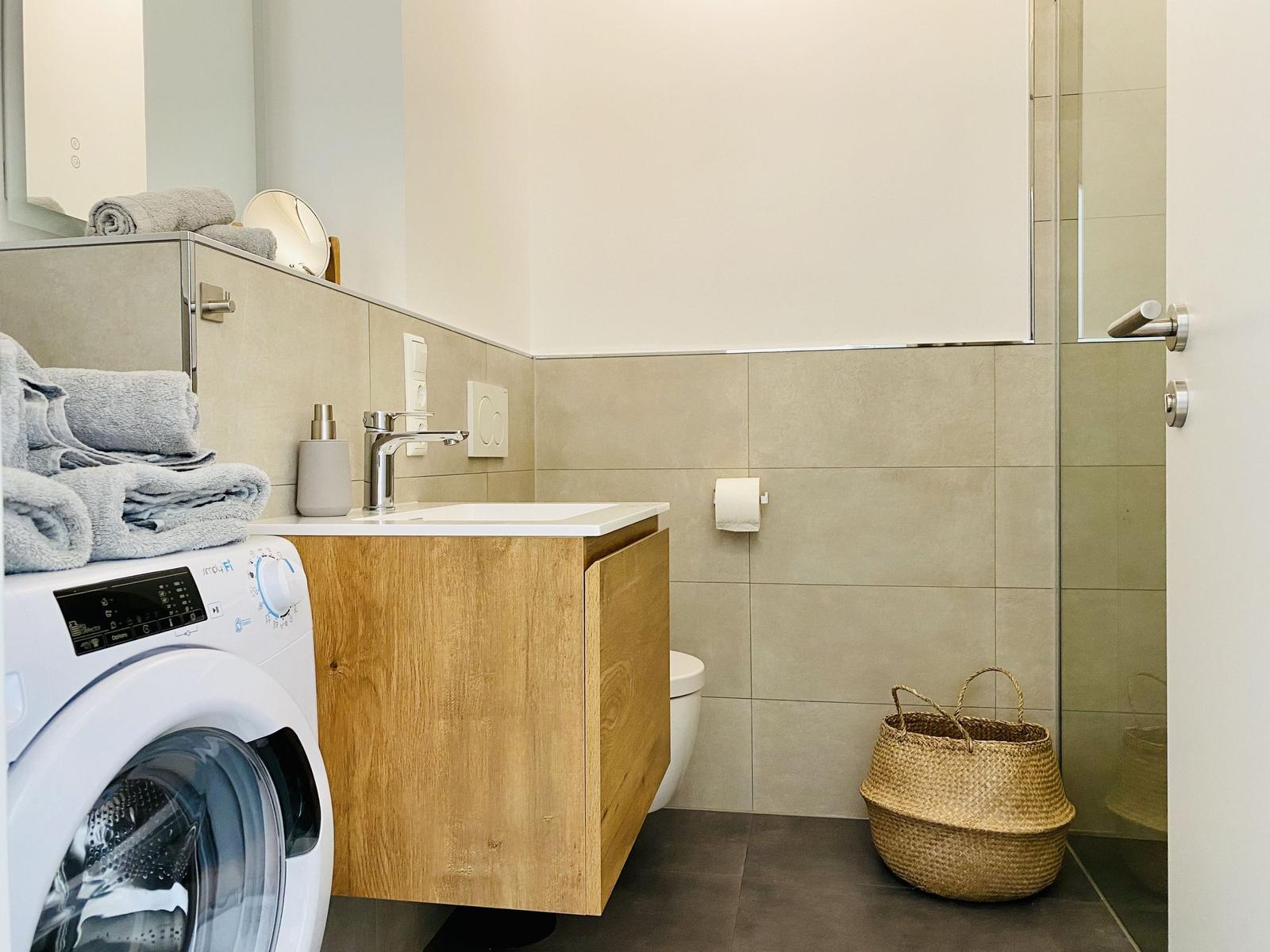 Zusätzliche Annehmlichkeiten wie Fußbodenheizung, Waschmaschine, Parkplatz und Aufzug sorgen für Komfort. Allergikerfreundliche Ausstattung und ein Starterset mit Pflegeprodukten runden das Angebot ab. Genießen Sie erholsame Tage und momente der Entspannung in dieser stilvollen Unterkunft!