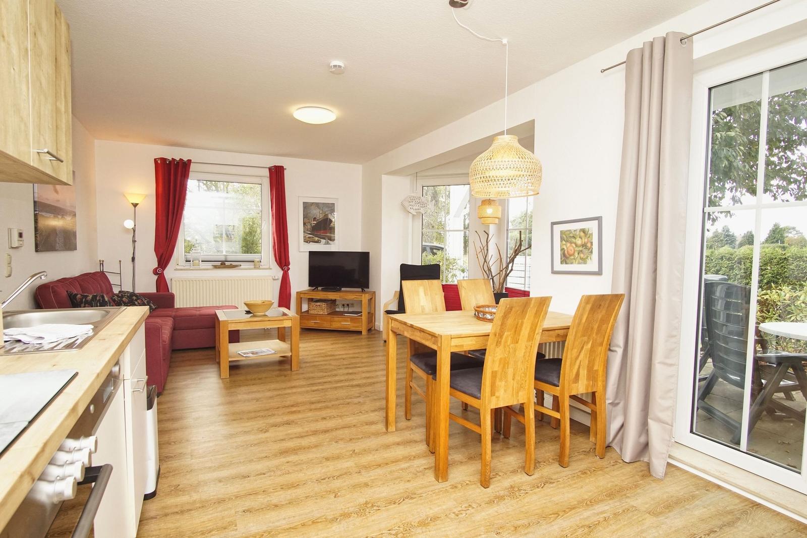 Die gemütliche Ferienwohnung Neptun in Breege bietet einen attraktiven Außenbereich, der ideal für Erholungssuchende ist. Gäste profitieren von einer Terrasse, die zum Entspannen einlädt, und einem geschützten Gartenbereich. Diese Außenbereiche sind perfekt, um die frische Ostseeluft zu genießen oder die Sonnenstrahlen auf einer eigenen Liege oder beim Essen im Freien auf der Terrasse aufzunehmen. Weiterhin stehen Parkplatzmöglichkeiten direkt am Haus zur Verfügung, sowie ein abschließbarer Schuppen für Fahrräder, ideal für aktive Urlauber. Die Lage der Wohnung ist vorteilhaft, da der Strand nur ca. 800 m entfernt liegt und ein schöner Hafen in wenigen Gehminuten erreichbar ist. Gemeinschaftliche Nutzung von Außenanlagen ist gegeben, wodurch die Gäste auch die Möglichkeit haben, mit anderen Urlaubern in Kontakt zu treten und gemeinsam Zeit zu verbringen.