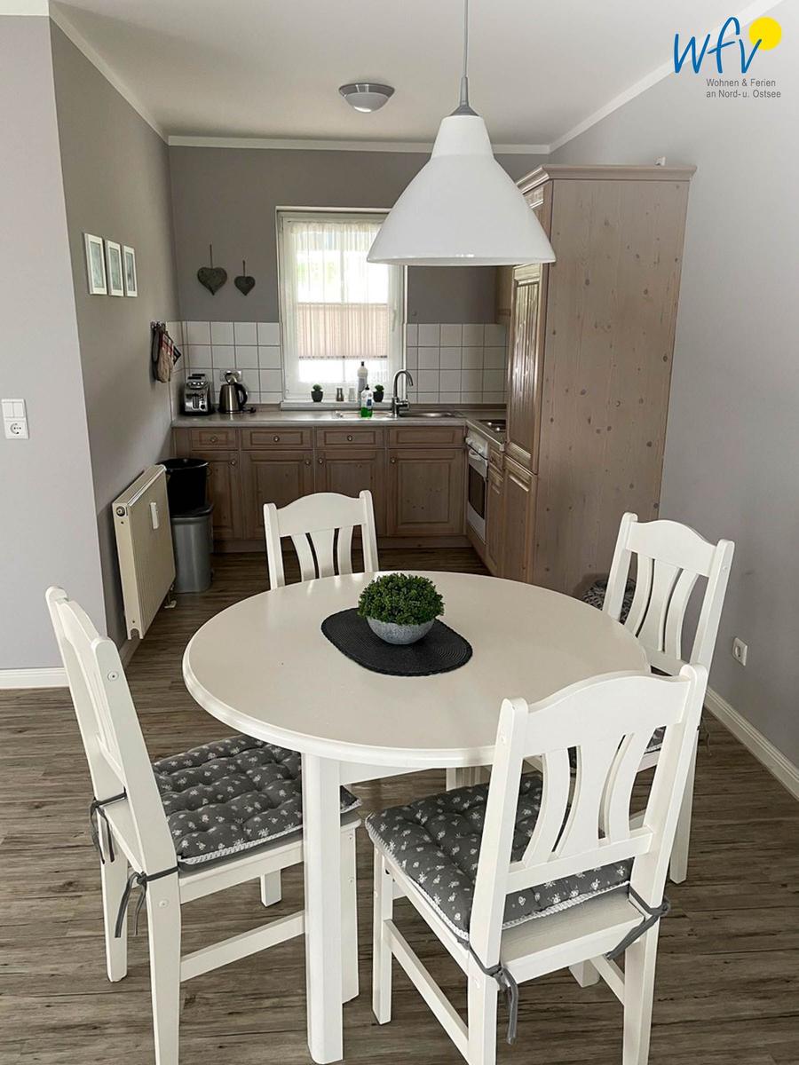 Die Ferienwohnung bietet eine moderne und allergikerfreundliche Unterkunft, ideal für entspannte Urlaubstage. Der offene Küchenbereich ist mit einem Elektro-/Gasherd, Backofen, Mikrowelle, Kühlschrank, Kaffeemaschine, Toaster und Wasserkocher ausgestattet, um kulinarische Erlebnisse zu ermöglichen. Der großzügige Esstisch lädt zu gemeinsamen Mahlzeiten ein.