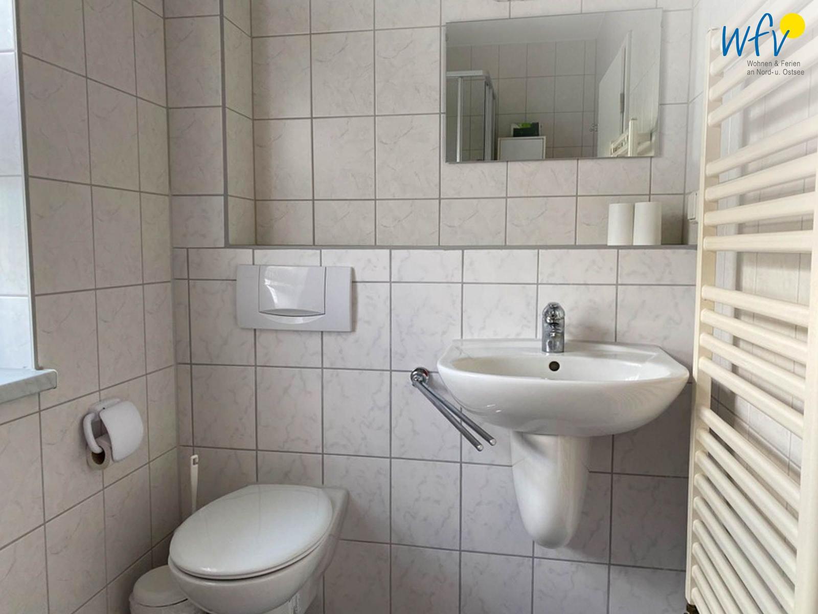 Das helle Schlafzimmer verfügt über ein komfortables Doppelbett, während das Badezimmer mit Fenster und Duschbad für zusätzlichen Komfort sorgt. Ein spiegelverziertes Bad sorgt für eine angenehme Atmosphäre.