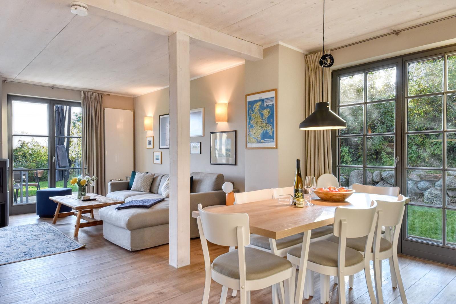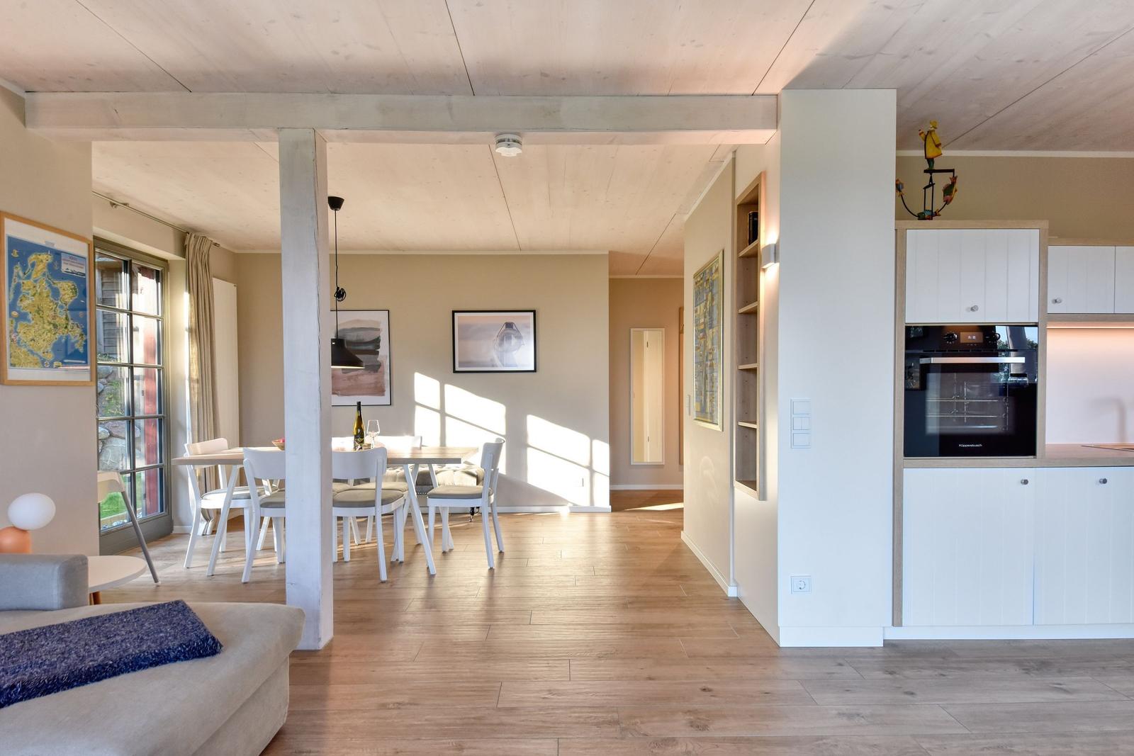 Diese elegante und gemütliche Ferienwohnung bietet eine harmonische Verbindung von Stil und Funktionalität. Mit drei Schlafzimmern, ausgestattet mit zwei Doppelbetten und zwei Einzelbetten, bietet sie Platz für erholsame Nächte. Die offene Küche ist ein wahrer Genuss für Kochliebhaber und verfügt über moderne Geräte wie Geschirrspüler, Elektro-/Gasherd, und Espressomaschine, während der Essbereich zu geselligen Abenden einlädt. Das lichtdurchflutete Wohnzimmer mit Kamin und TV schafft eine einladende Atmosphäre. Zwei Badezimmer, eines mit bodengleicher Dusche und Fenster, garantieren Komfort und Privatsphäre. Zusätzlich sorgt das WLAN, die Allergikerfreundlichkeit und eine Waschmaschine für einen stressfreien Aufenthalt. Fahrräder sind ebenfalls vorhanden, und die private Terrasse mit Sonnenschirm lädt zum Entspannen ein. Ein Parkplatz sorgt für einen komfortablen Zugang. Hier wird jeder Aufenthalt zu einem unvergesslichen Erlebnis.
