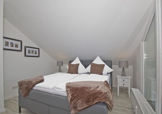 Die Ferienwohnung bietet eine komfortable und allergikerfreundliche Unterkunft, die ideal für entspannende Urlaubstage ist. In einem gemütlichen Schlafzimmer mit einem Doppelbett und einem Einzelbett finden die Gäste erholsame Nächte. Das moderne Badezimmer ist mit einem Duschbad und einem Haartrockner ausgestattet.