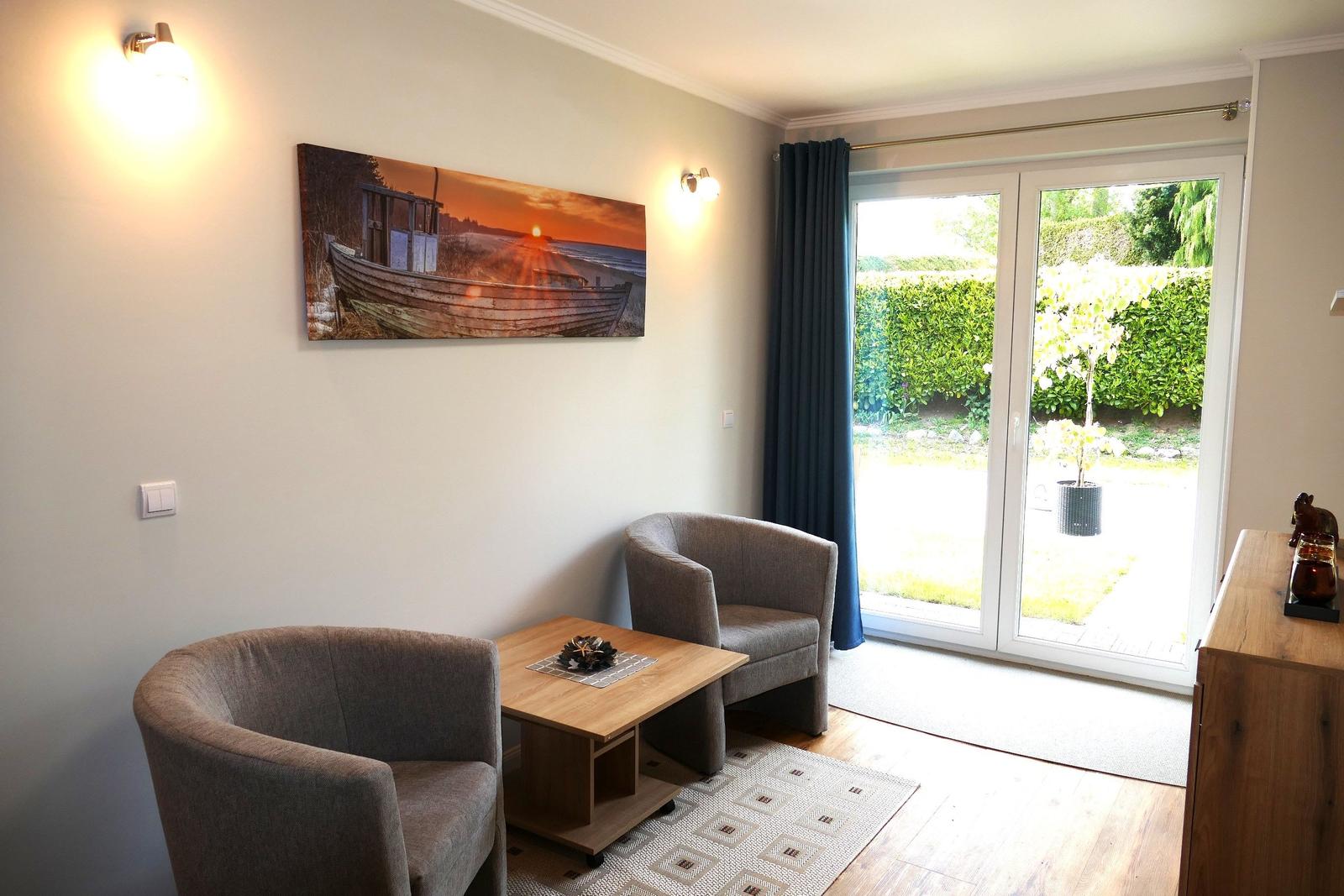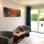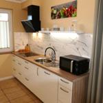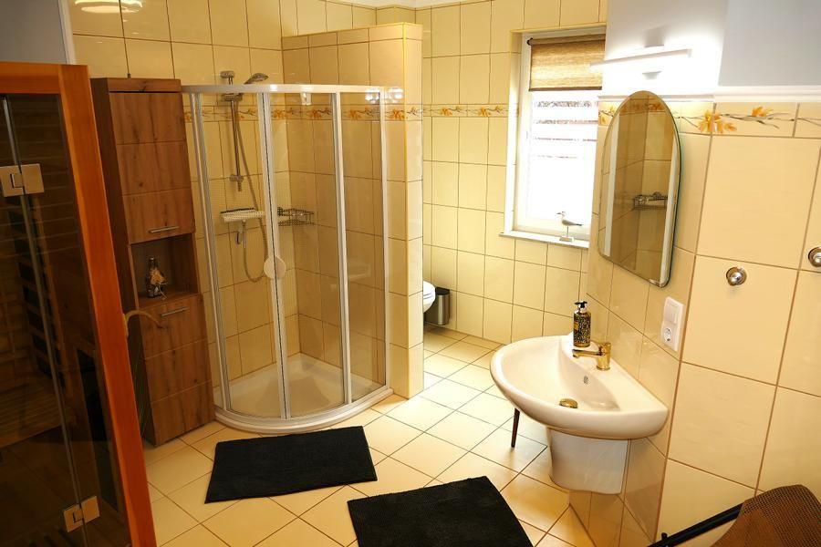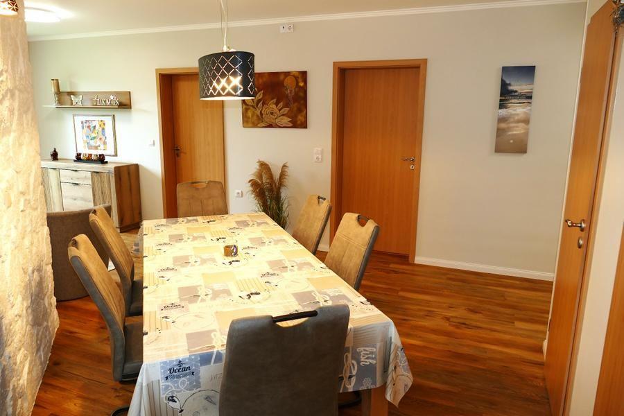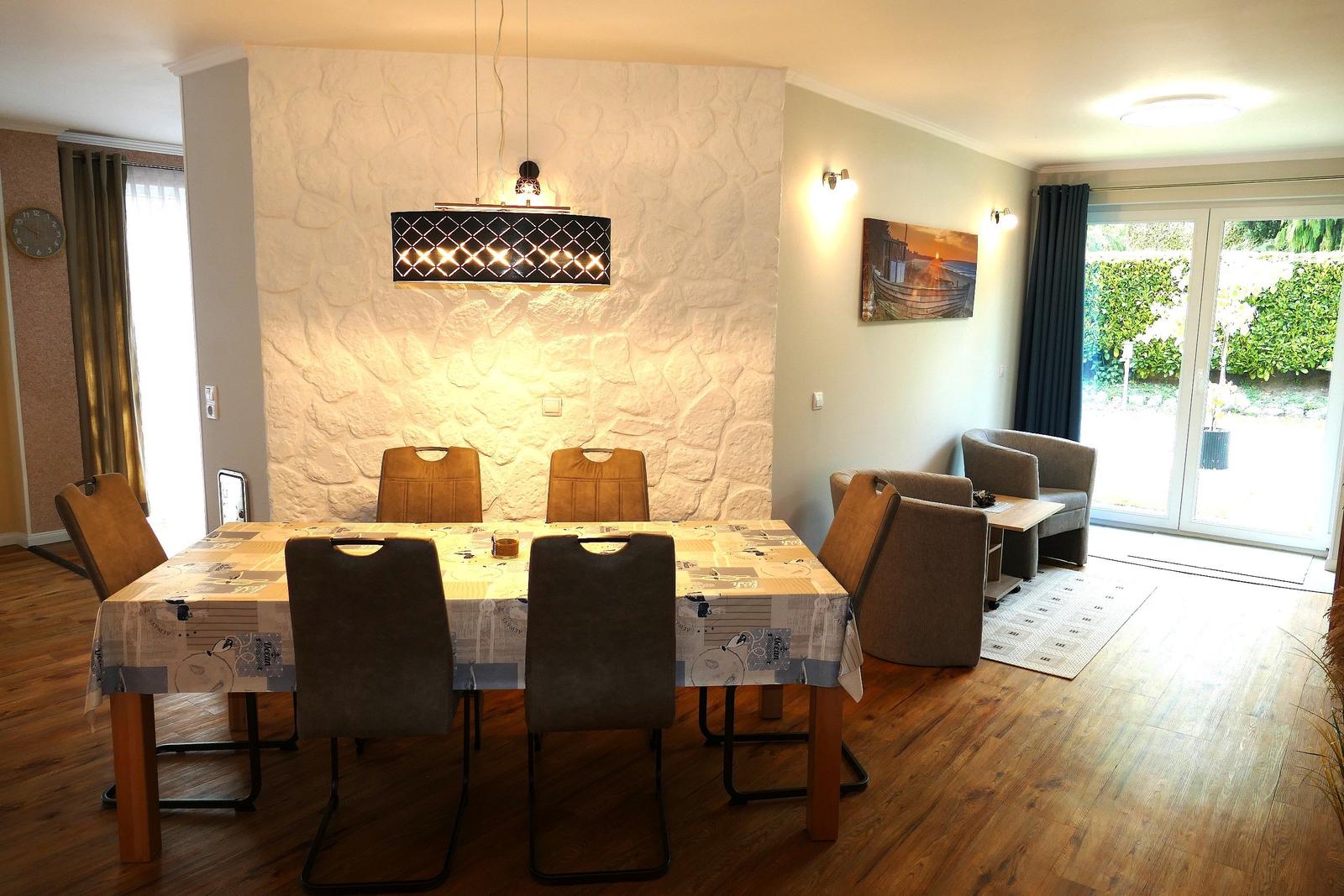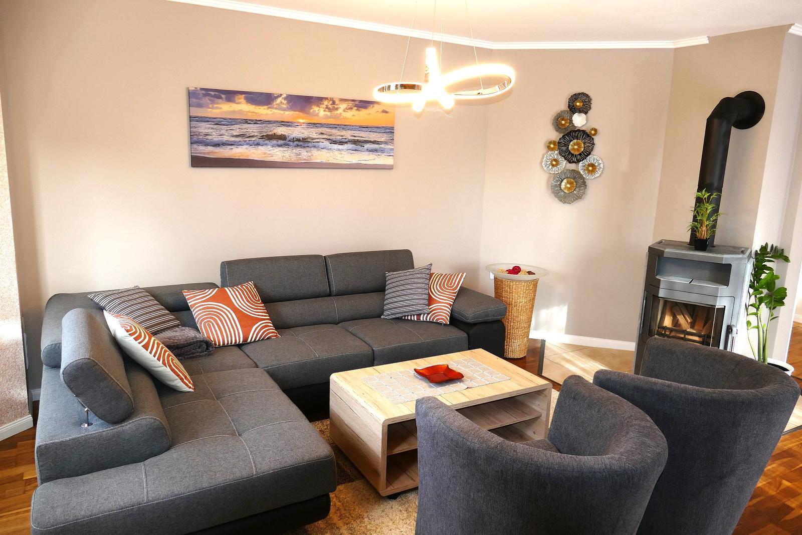 ausgestattet, verfügt aber über ein kleines separates Bad mit Toilette und Waschbecken. Die Ausstattung unserer Küche beinhaltet eine Spülmaschine, Cerankochfeld, Backofen, Kühlschrank mit Tiefkühlfach, Mikrowelle, Wasserkocher, Kaffeemaschine, Toaster etc. Im Wohnbereich ist mit einem Kamin (nicht zur Benutzung für Gäste), HIFI Anlage und TV ausgestattet. WLAN Empfang wird über hauseigenem Hotspot zur Verfügung gestellt.