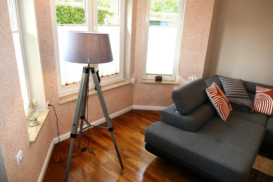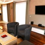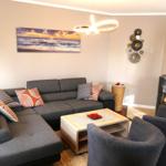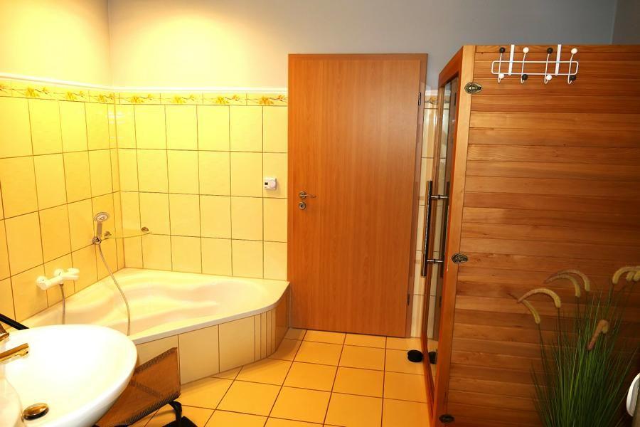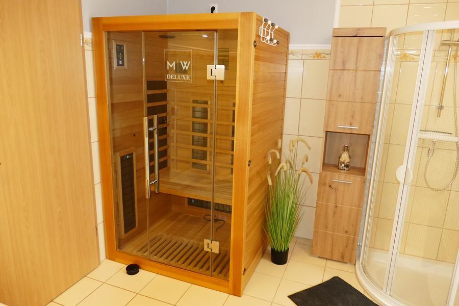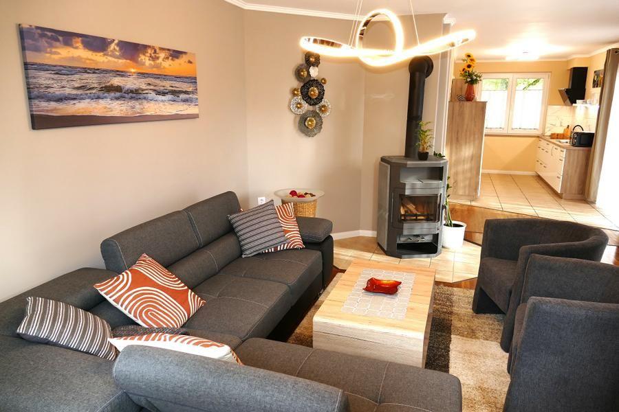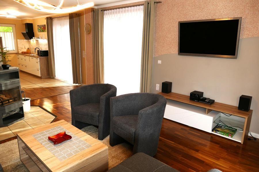 Dieses Ferienobjekt wurde in einem freien Wohnraumkonzept gestaltet, offener Wohn-, Küchen- und Essbereich, sowie einer Lounge zum Verweilen. Alles wurde großzügig und offen gestaltet. Das Badezimmer ist mit einer Eckbadewanne, Dusche und Infrarotsauna für zwei Personen ausgestattet . Es gibt zwei Schlafzimmer mit eigenem TV . Ein Schlafzimmer verfügt über ein Doppelbett und einem Einzelbett, das zweite Schlafzimmer ist mit einem Doppelbett
