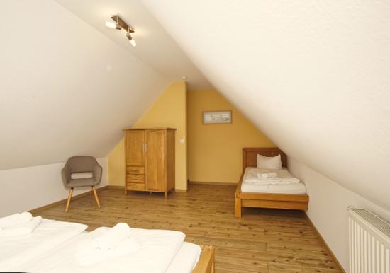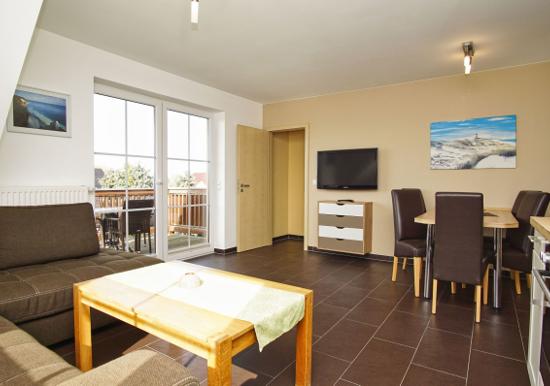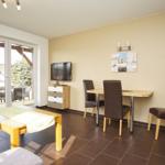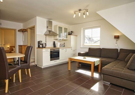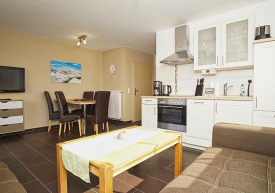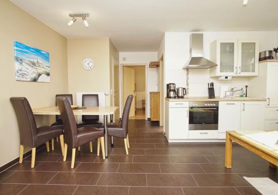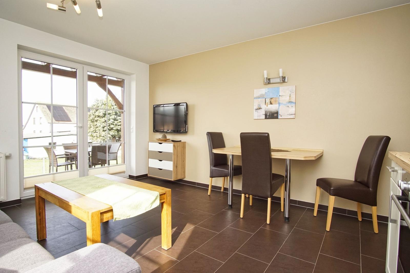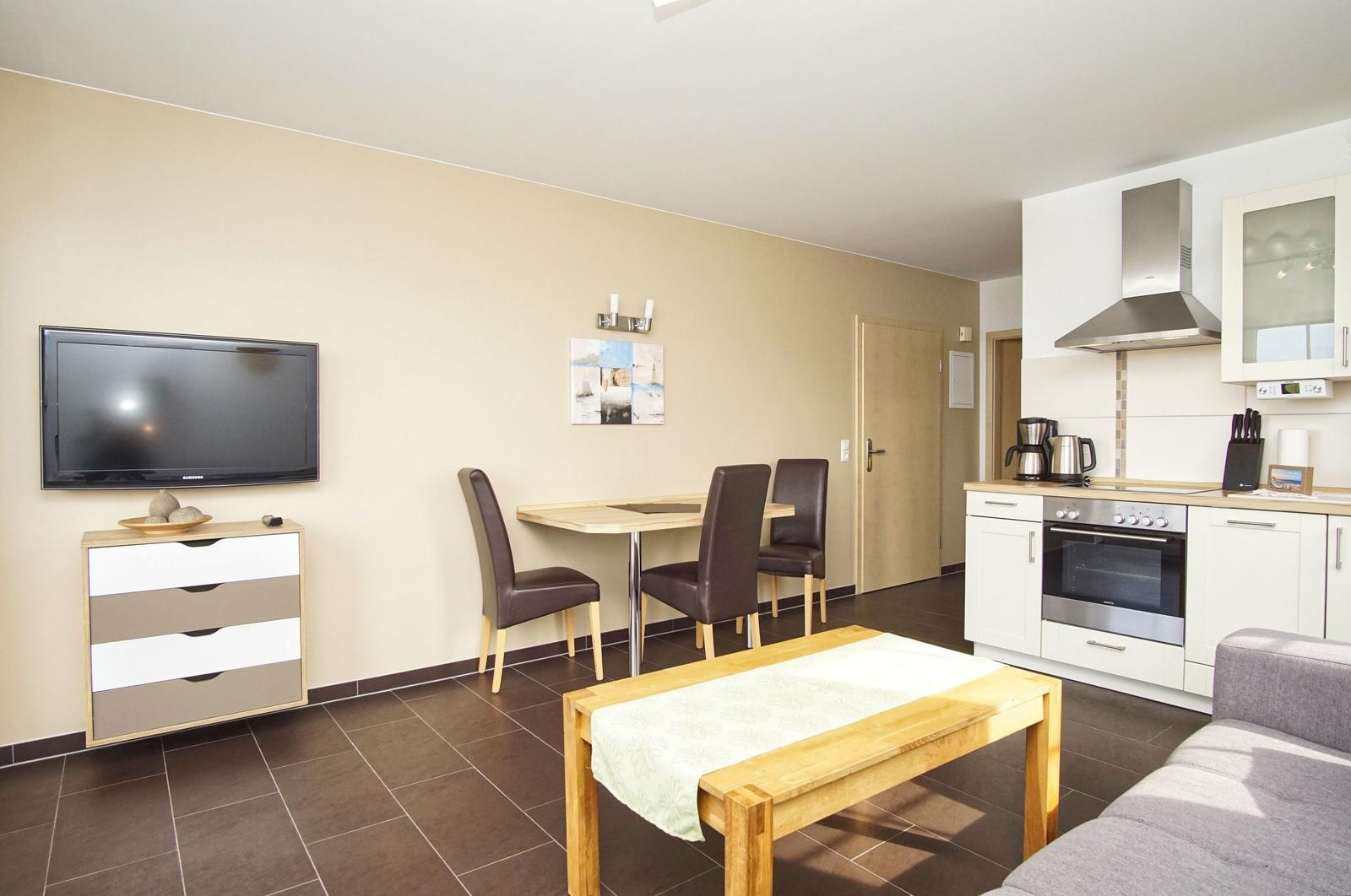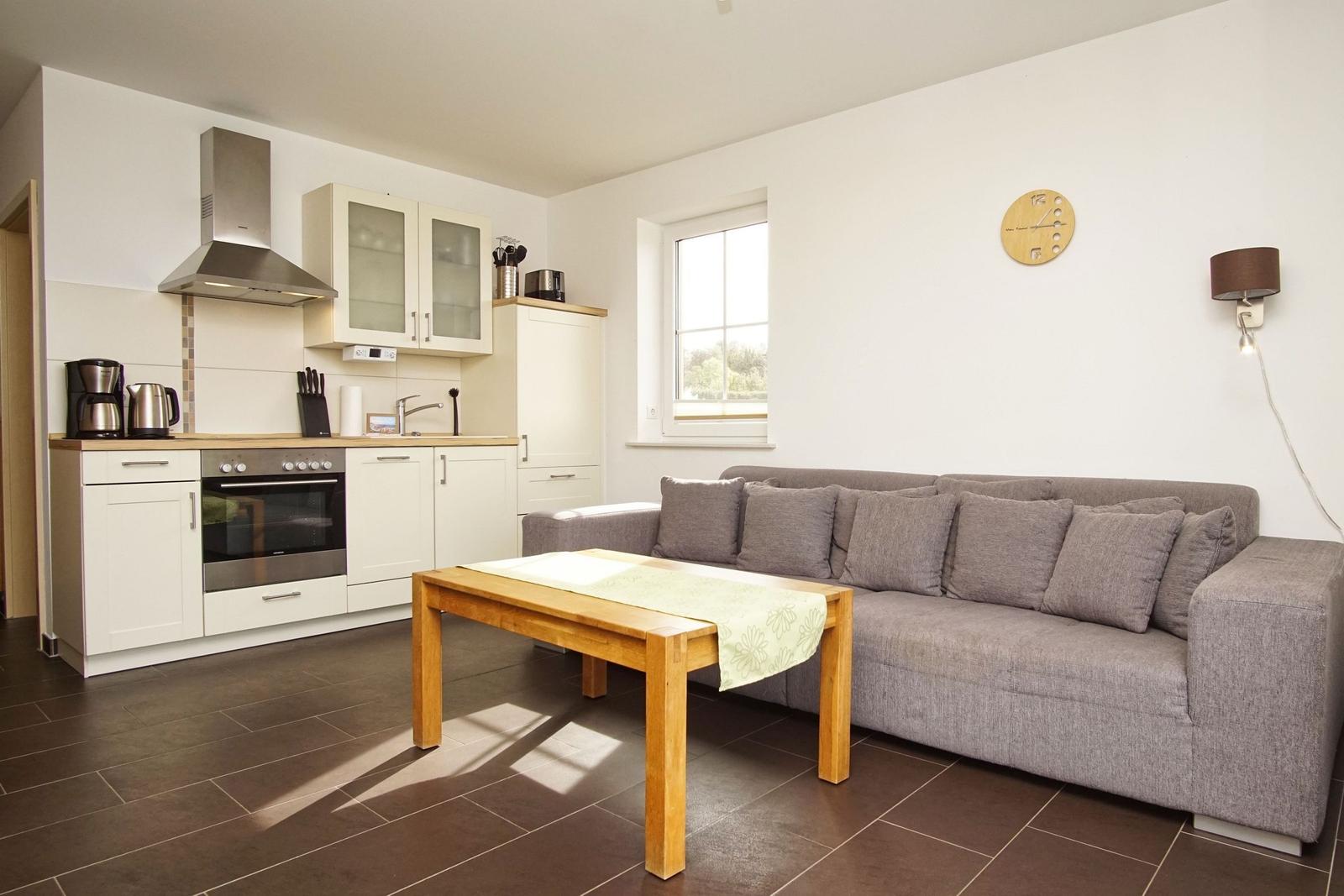 In dieser geschmackvoll eingerichteten Ferienwohnung erwartet den Gast ein komfortabler Rückzugsort. Ein helles Schlafzimmer mit einem Doppelbett sorgt für erholsame Nächte, während das Duschbad mit Fenster und Haartrockner modernen Komfort bietet. Die offene Küche ist ideal für kulinarische Experimente und verfügt über einen Elektro-/Gasherd, Backofen, Mikrowelle, Kühlschrank mit Gefriermöglichkeit sowie Geschirrspüler. Für den perfekten Start in den Tag steht eine Kaffeemaschine bereit. Der gemütliche Esstisch und das Sofa laden zum Verweilen ein. Zu den Annehmlichkeiten gehören kostenloses WLAN, eine HiFi-Anlage und TV für entspannte Abende. Der Parkplatz direkt am Haus, sowie eine Waschmaschine bieten zusätzlichen Komfort. Allergikerfreundliche Ausstattung und Rauchmelder sorgen für Sicherheit und ein gutes Raumklima. Diese Wohnung ist der ideale Ort für erholsame Ferien.