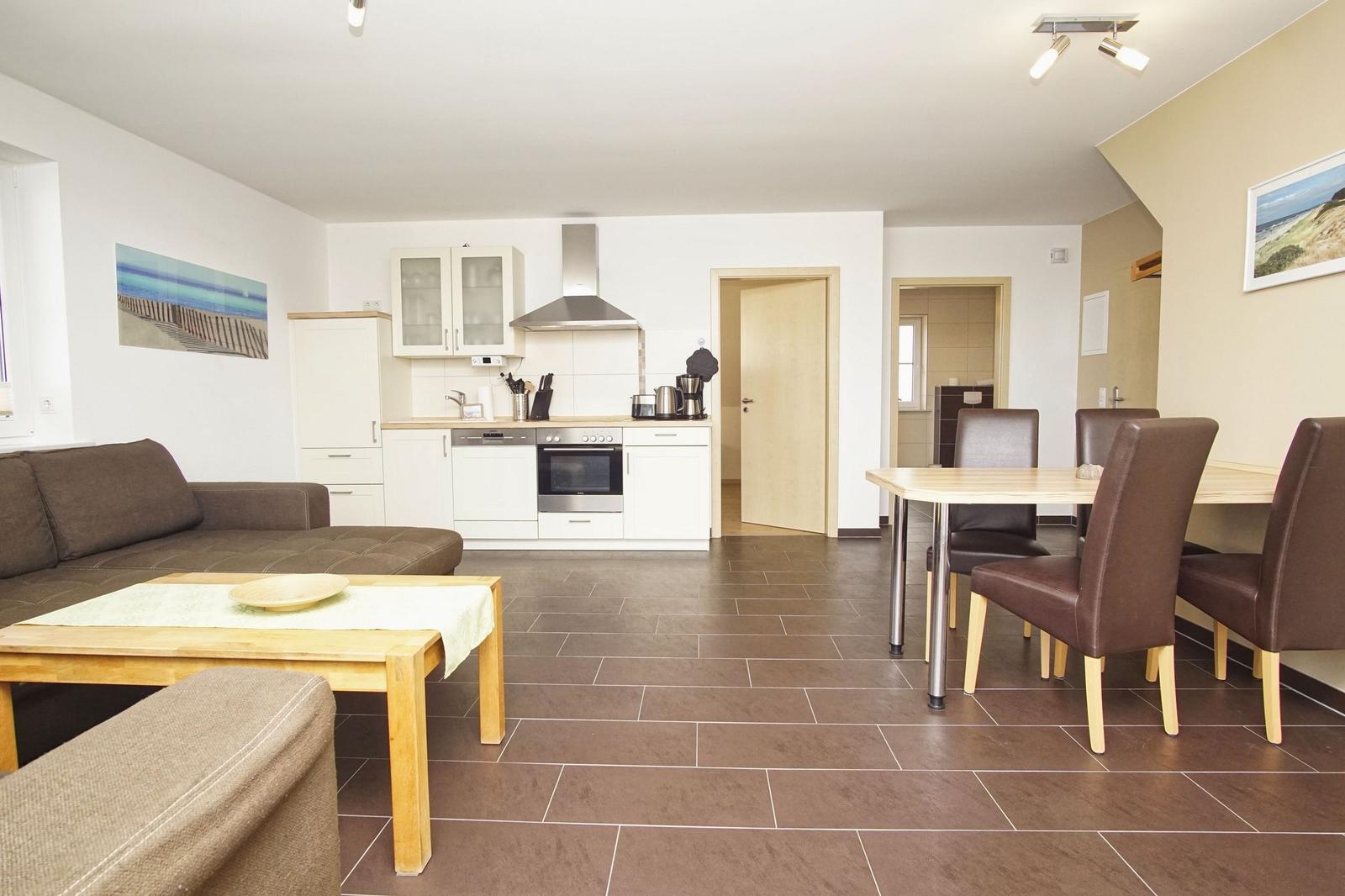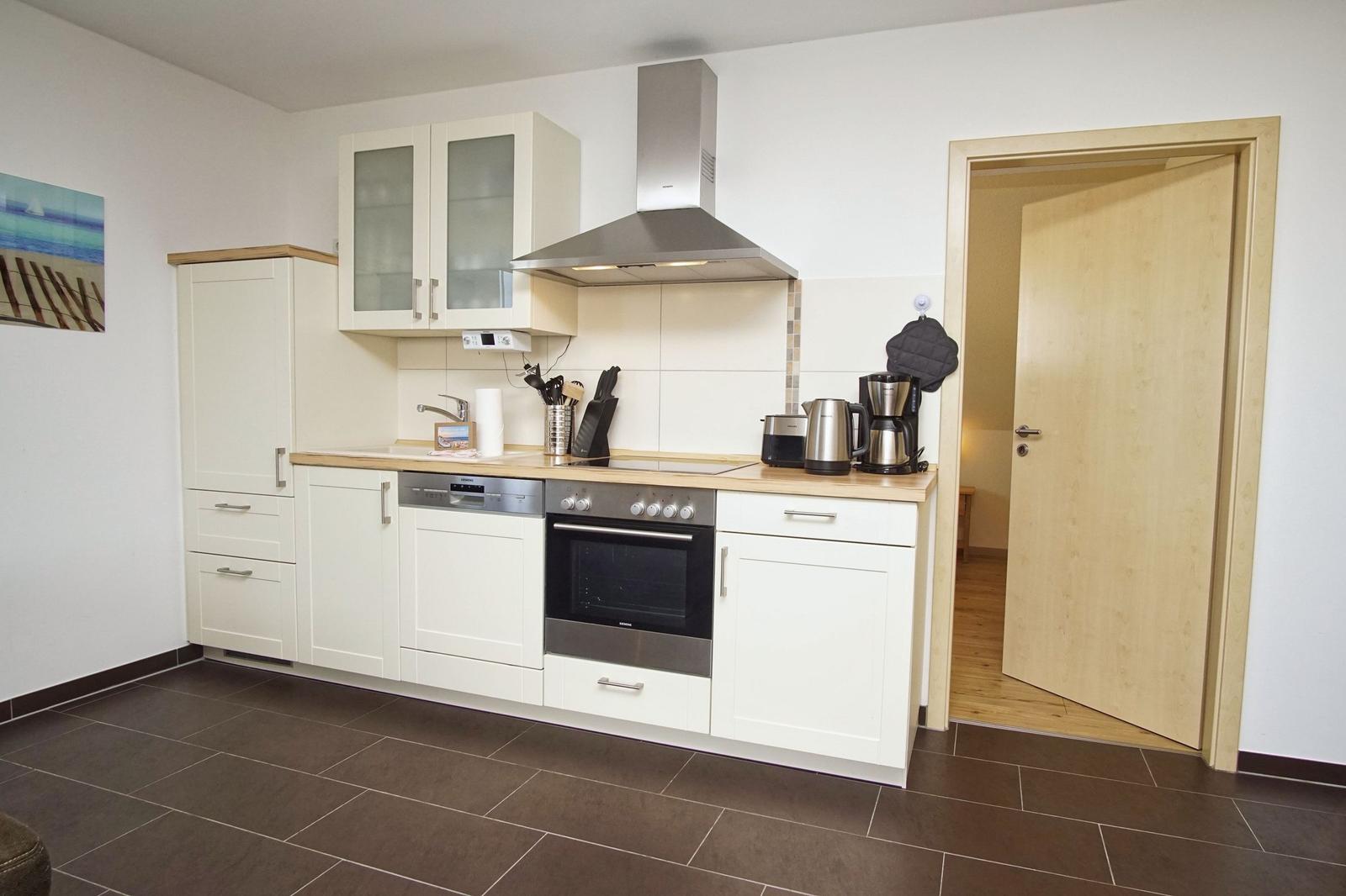 Diese gemütliche Ferienwohnung bietet alles, was für einen entspannten Aufenthalt erforderlich ist. Die offene Küche ist vollständig ausgestattet mit einem Elektro-/Gasherd, Backofen, Geschirrspüler, Kühlschrank, Gefriermöglichkeit, Kaffeemaschine, Toaster und Wasserkocher. Ideal für Familien oder Gruppen bietet die Wohnung zwei Schlafzimmer mit zwei Doppelbetten und einem Einzelbett. Das Badezimmer überzeugt mit einem Fenster, einer Dusche und einem Haartrockner.